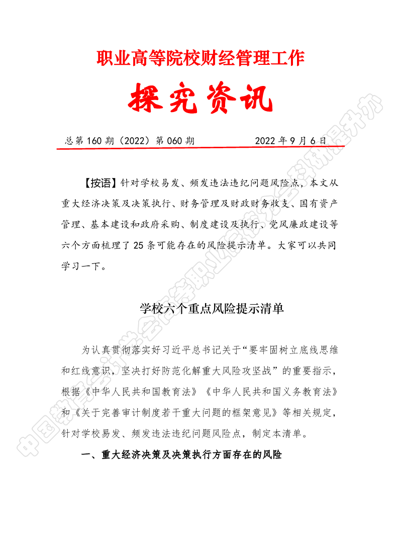 探究资讯160:学校六个重点风险提示清单