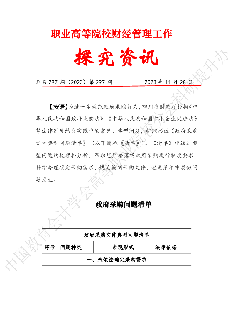 探究资讯297:政府采购问题清单
