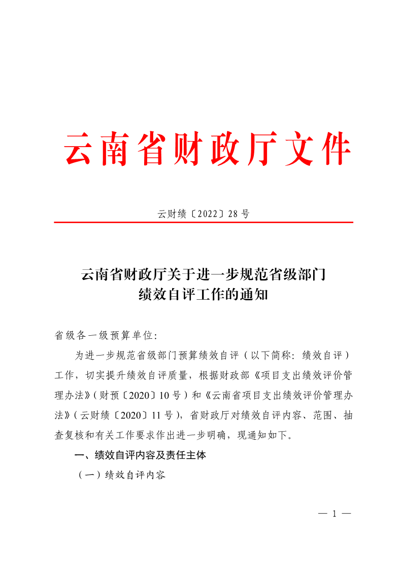 云南省财政厅关于进一步规范省级部门绩效自评工作的通知