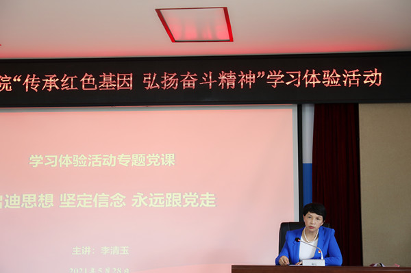 最后,李清玉强调,在党史学习教育中开展“传承红色基因·弘扬奋斗精神”学习体验活动暨读书班现场教学活动是深化党史学习教育的重要内容,是激发广大党员听党话、感党恩、跟党走的有效途径,学院各基层党组织要组织好党员、干部、群众,特别是青年学生就近就便开展学习体验活动,通过体验活动振奋精神、鼓舞士气,凝聚学院高质量发展的磅礴力量,以优异成绩庆祝建党100周年。
