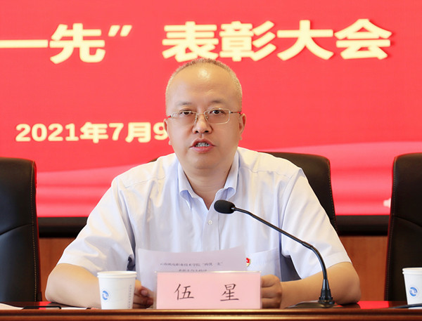 在举国上下庆祝中国共产党成立100周年之际,7月9日下午,我校在5楼报告厅召开学习贯彻习近平总书记“七一”重要讲话精神暨“两优一先”表彰大会。学院领导、中层干部、受表彰同志、全体党员同志和168名学生预备党员参会。会议由党委副书记、院长伍星主持。