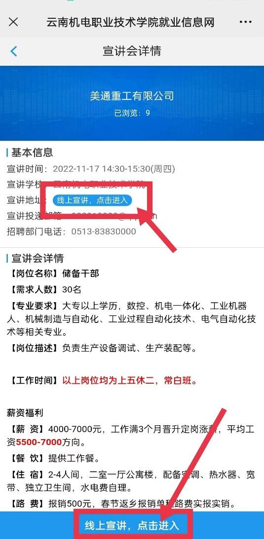 第六步:点击“线上宣讲,点击进入”或手机扫码观看直播宣讲。